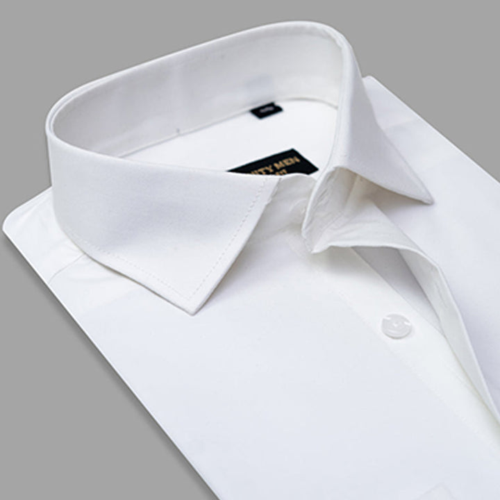 White Herringbone Textured Formal Shirt